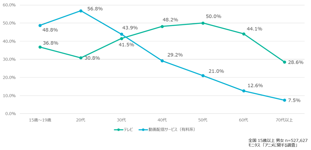 「テレビ vs 有料動画配信サービス」アニメ視聴媒体の分岐ポイントは30代?
