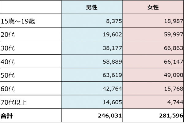 有効回答数 :527,627名 (男性262,288名、女性265,339名)※日本の70代までの人口構成比に併せてウェイトバック集計を実施