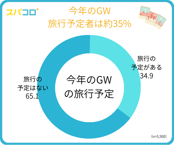 ■今年のGW旅行予定者は34.9%。そのうち国内は5割、海外は約1割。