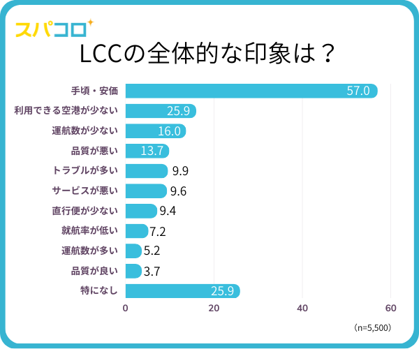LCCに対する全体的な印象は「手頃・安価」が約6割でした。