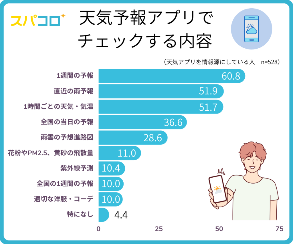 では、天気予報アプリのユーザーはアプリでどんな情報をチェックしているのでしょうか。