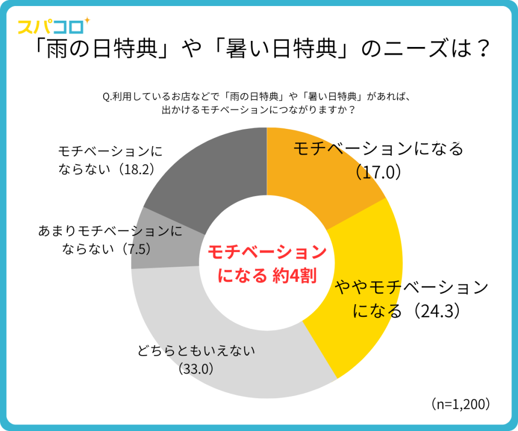 ■「雨の日特典」「暑い日特典」がもしあったとしたら約4割が「モチベーションに繋がる」と回答。