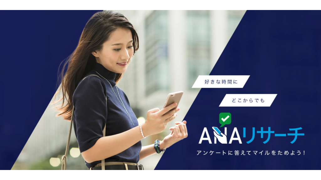 ANAリサーチは、日々の生活の中で無理なく楽しくマイルが貯めることができるサービスです。モニター会員登録をしていただき、配信されるアンケートにPCやスマートフォンで答えるだけでマイルに交換できるポイントが貯まります。